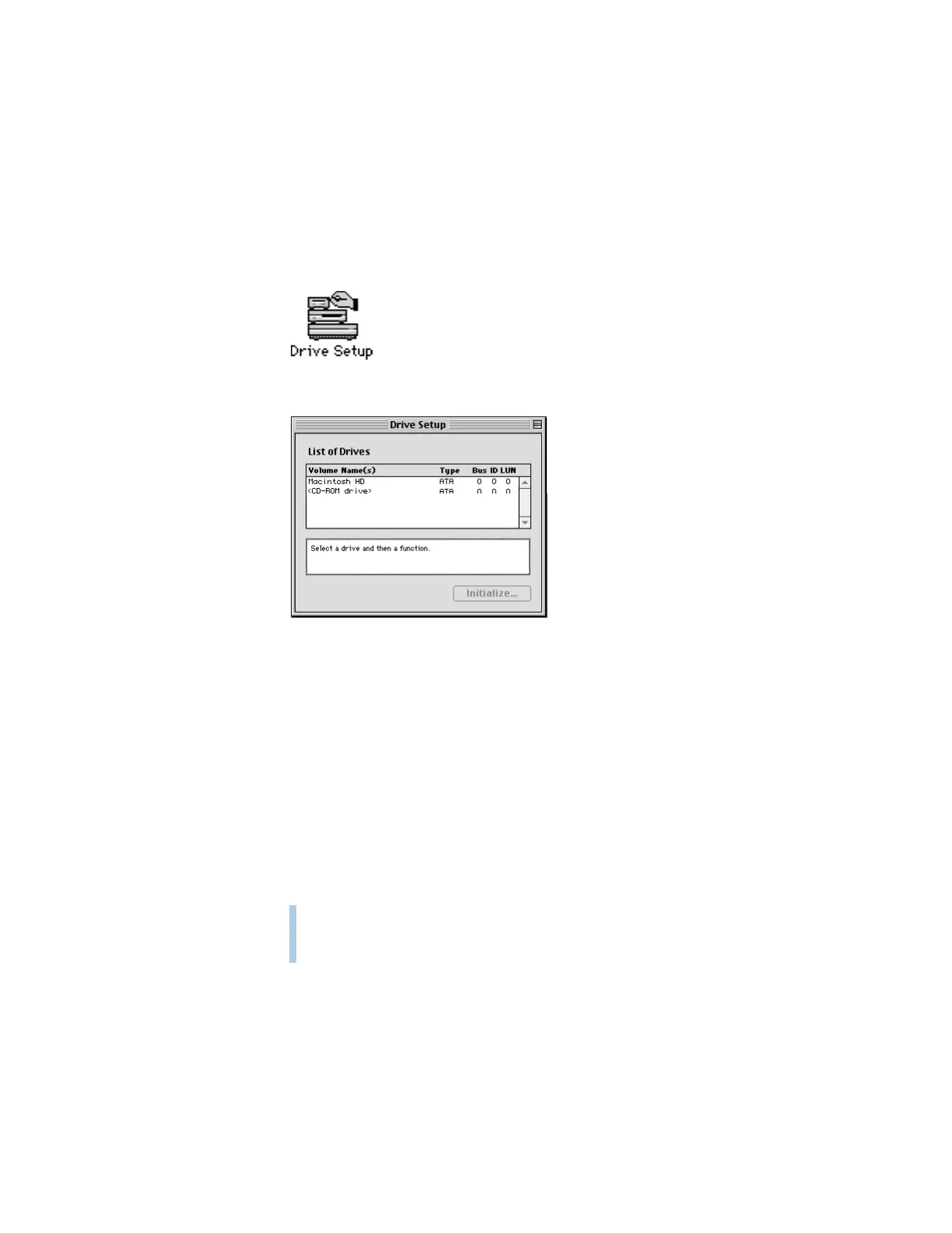 2 Locate the Drive Setup icon and double-click it to open the Drive Setup program.