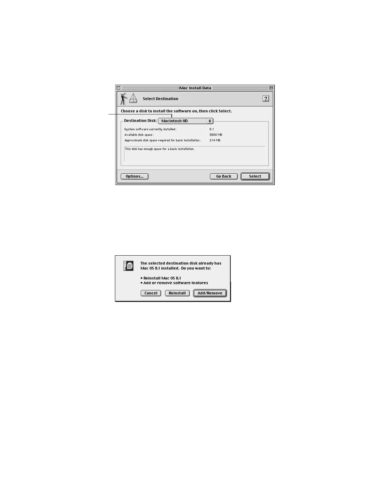 4 Choose the destination disk from the pop-up menu and click Select.