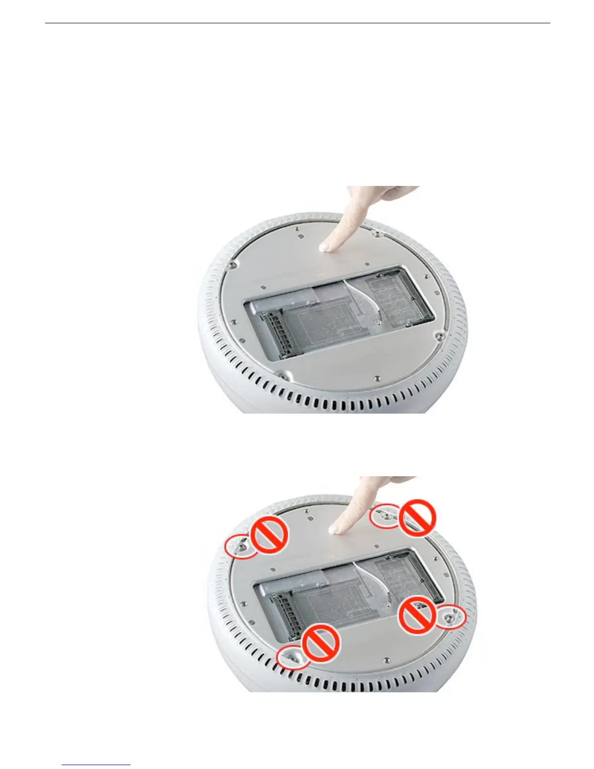 screws circled below. Loosening these screws could cause the computer to