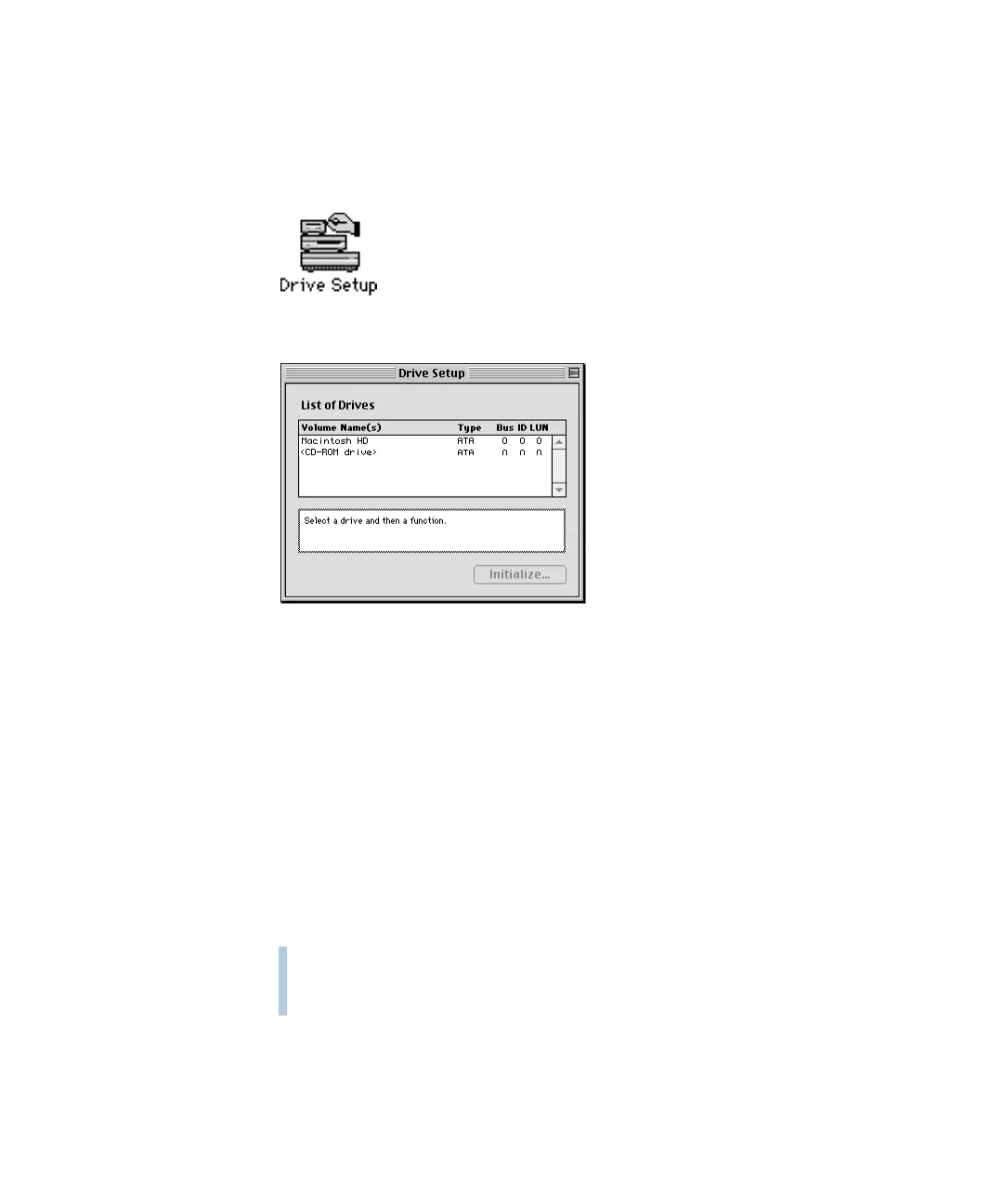 2 Locate the Drive Setup icon and double-click it to open the Drive Setup program.