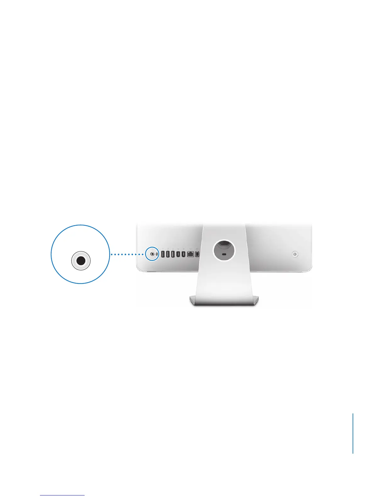 Your iMac comes with built-in stereo speakers, a headphone out/optical digital audio