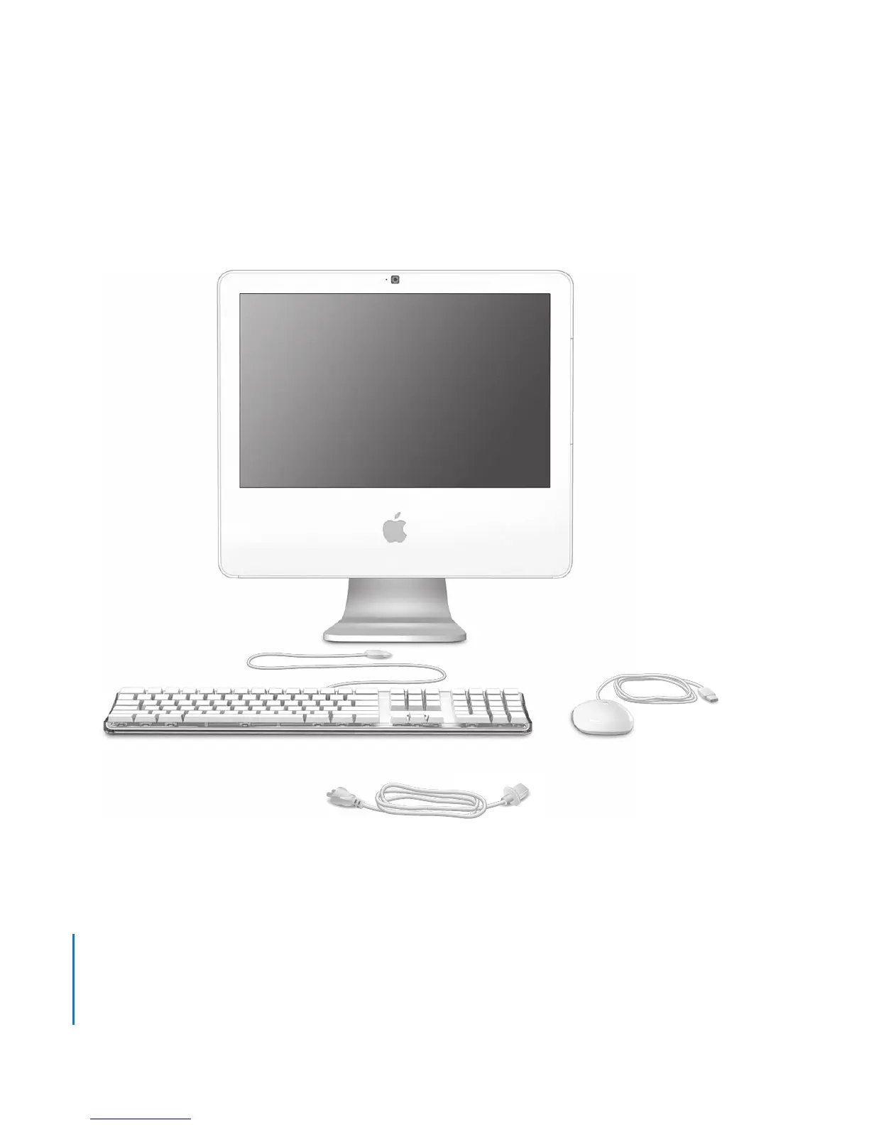 Your iMac comes with an Apple Keyboard, a Mighty Mouse, and an AC power cord.