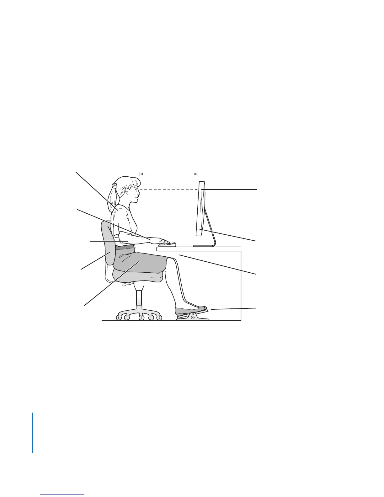 angle to the keyboard. If this makes it impossible to rest your feet flat on the floor, you