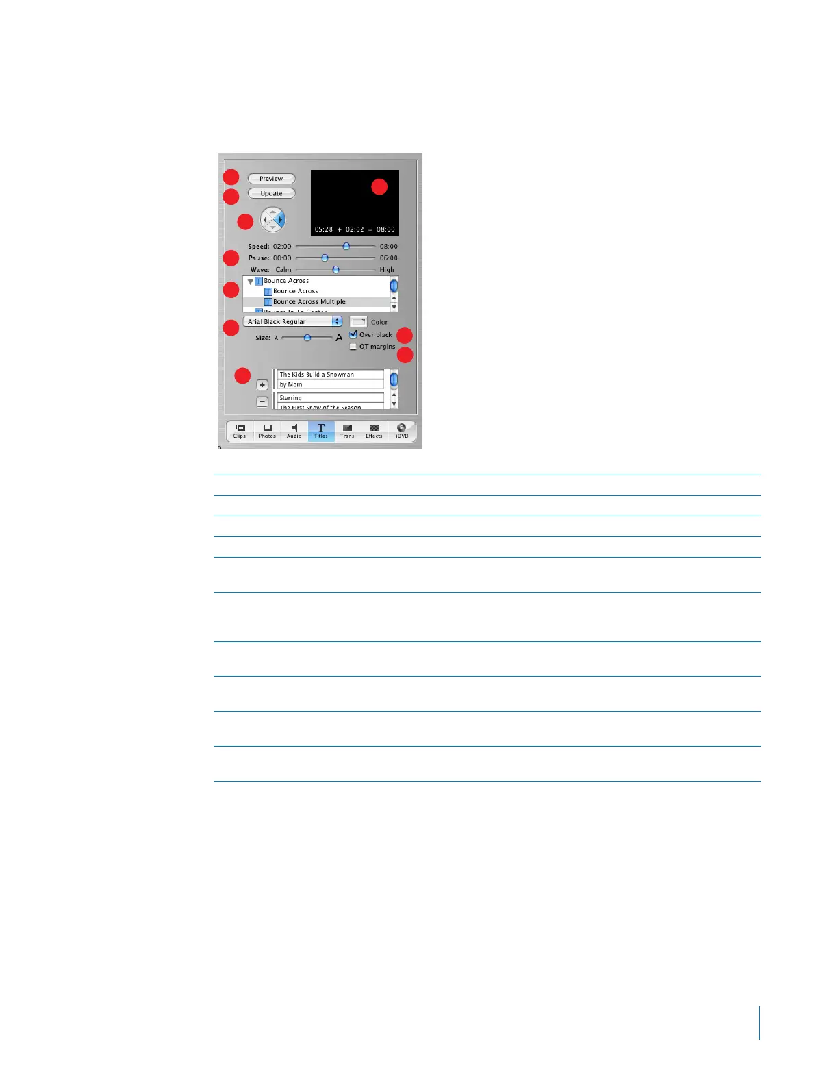 more titles in that category. When you’re done setting options for the title, drag the title style from this list to