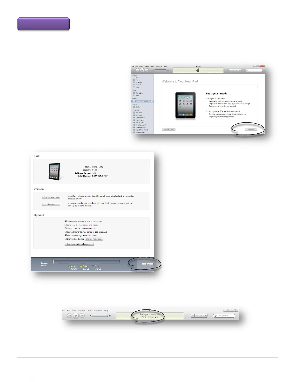 The iPad will display Sync in Progress for only a few seconds and iTunes displays the status on the computer.