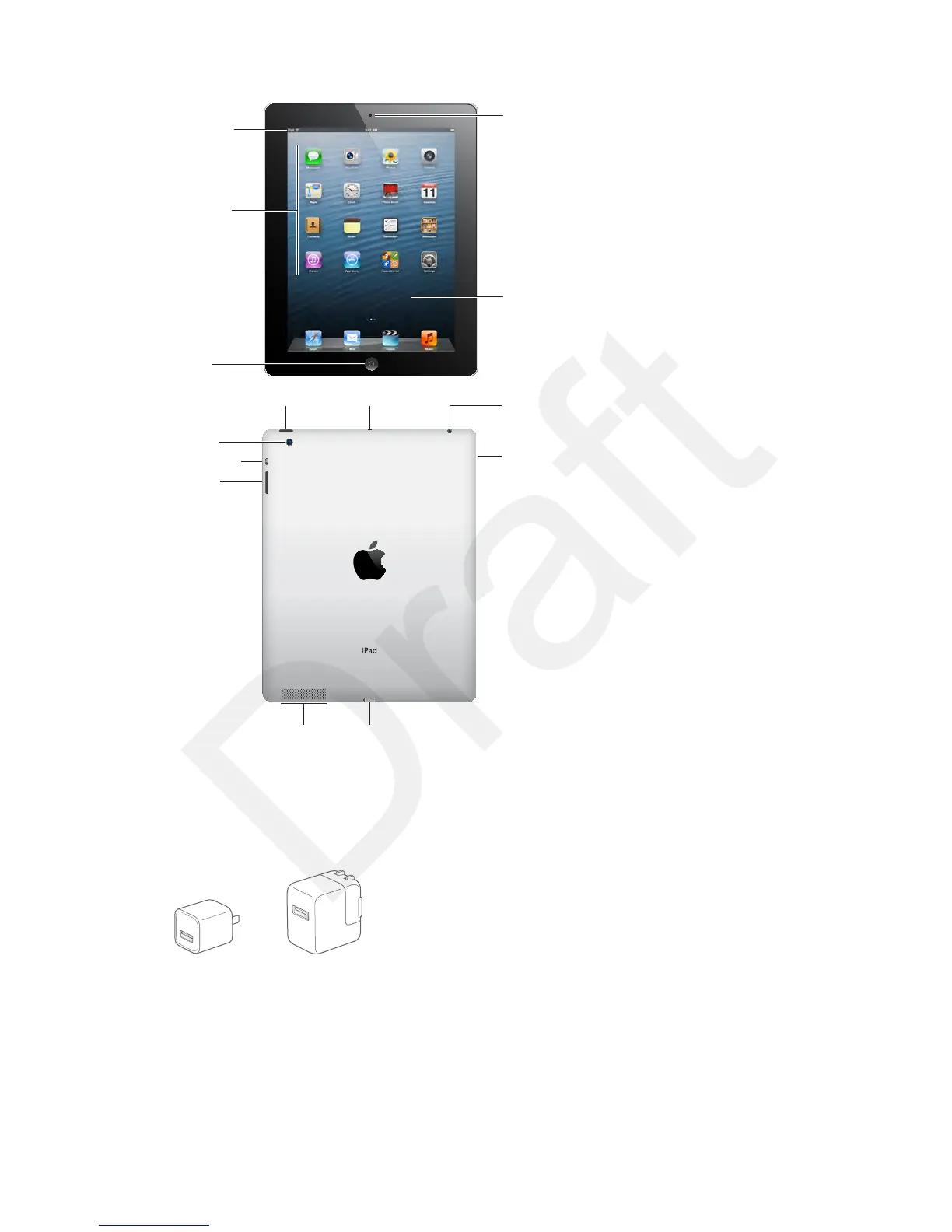 USB power adapter. Use the included power adapter to power iPad and charge the battery.