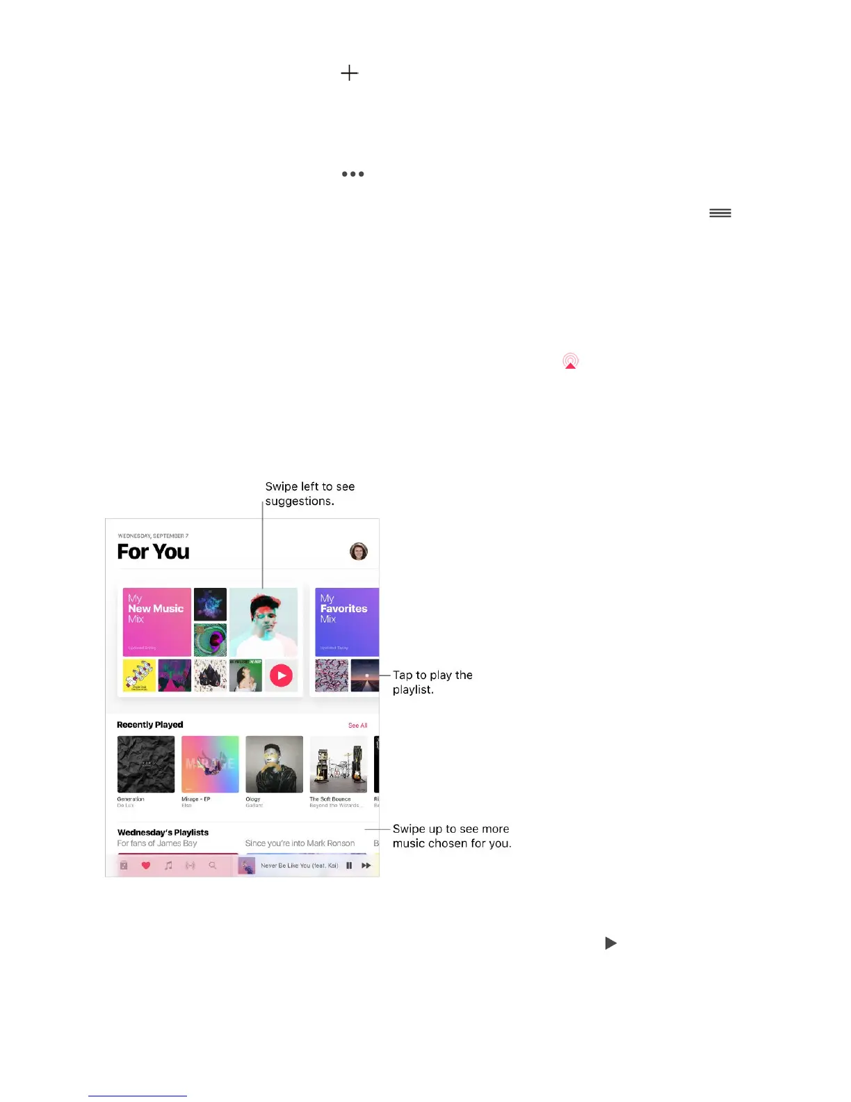 Play music. Tap For You, touch and hold a playlist or album, then tap . Tap an album or