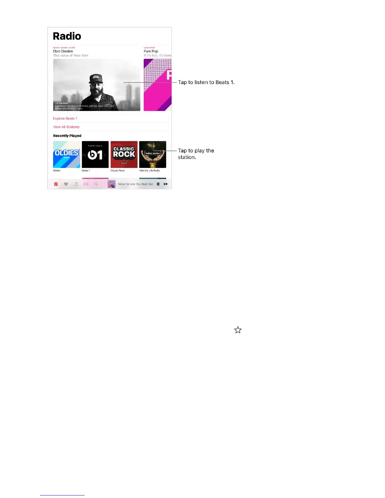 Note: Because Beats 1 is live radio, you canʼt pause, rewind, or skip tracks.