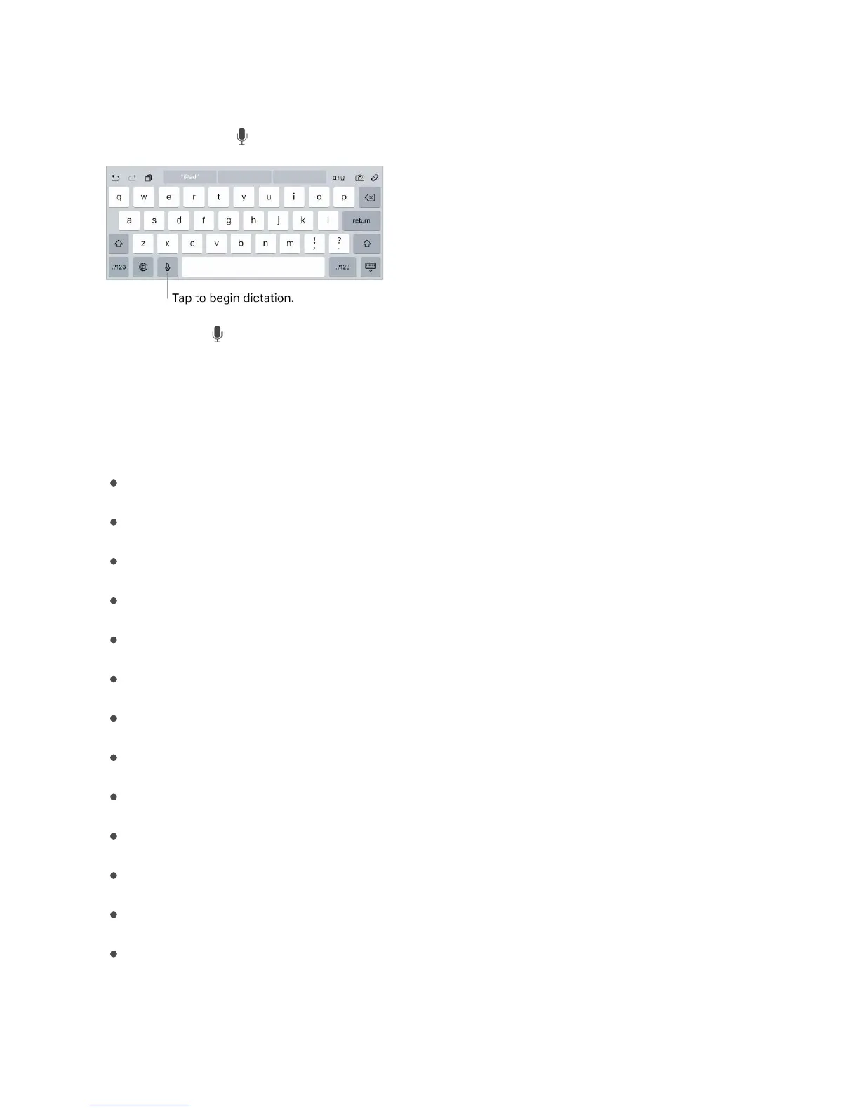 Note: Dictation may not be available in all languages or in all areas, and features may