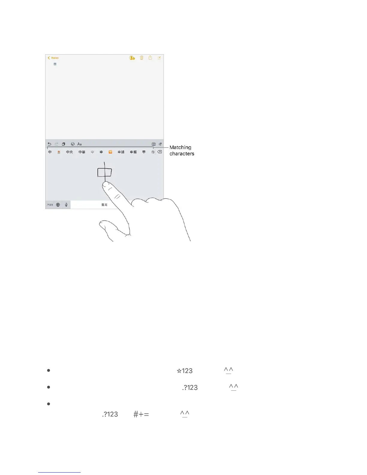 International Airport), by writing two or more component characters in sequence. Tap the