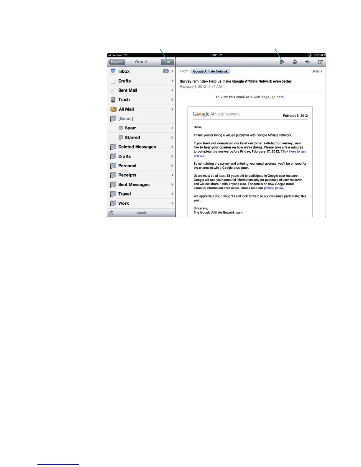 FIGURE 15-3: The Edit and Move buttons appear at the top of the Mail