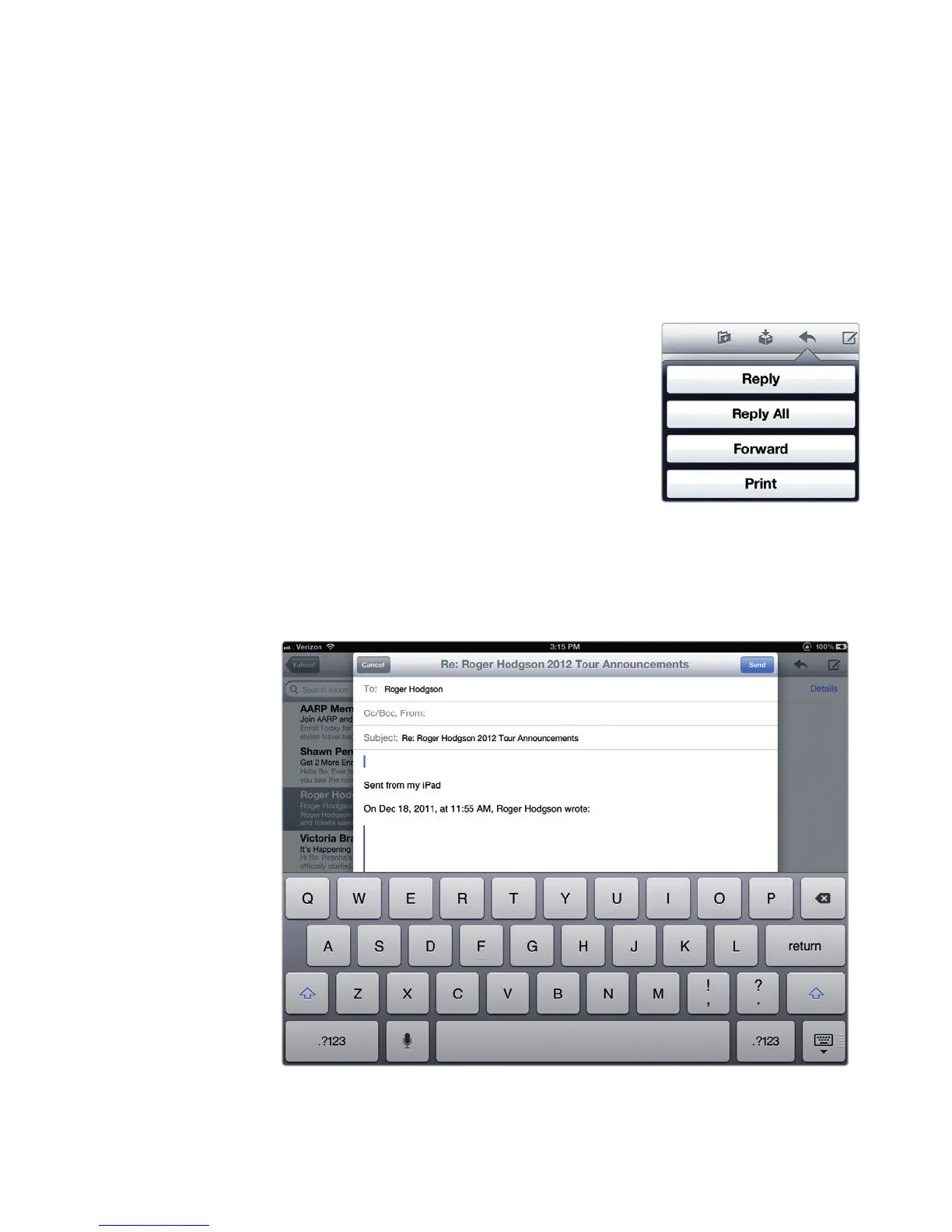 listing Reply, Reply All, Forward, and Print