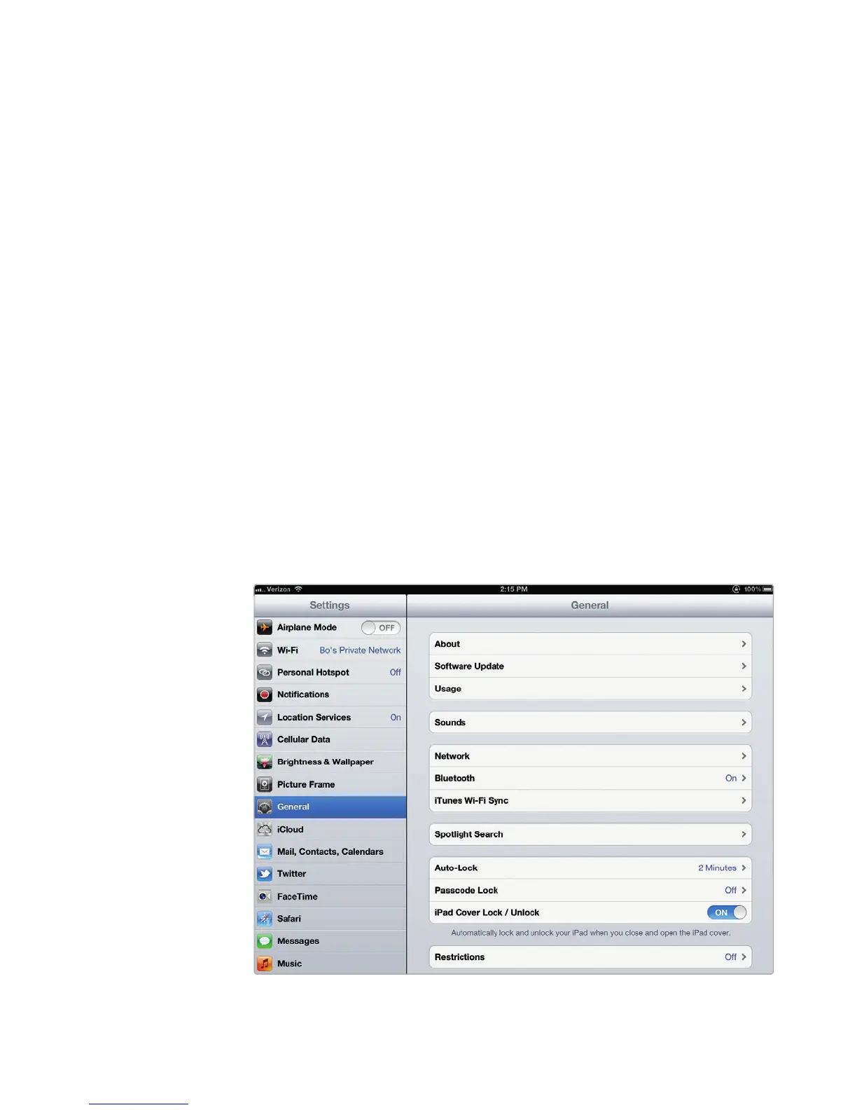4. From the Home screen of the iPad, tap Settings. The Settings screen