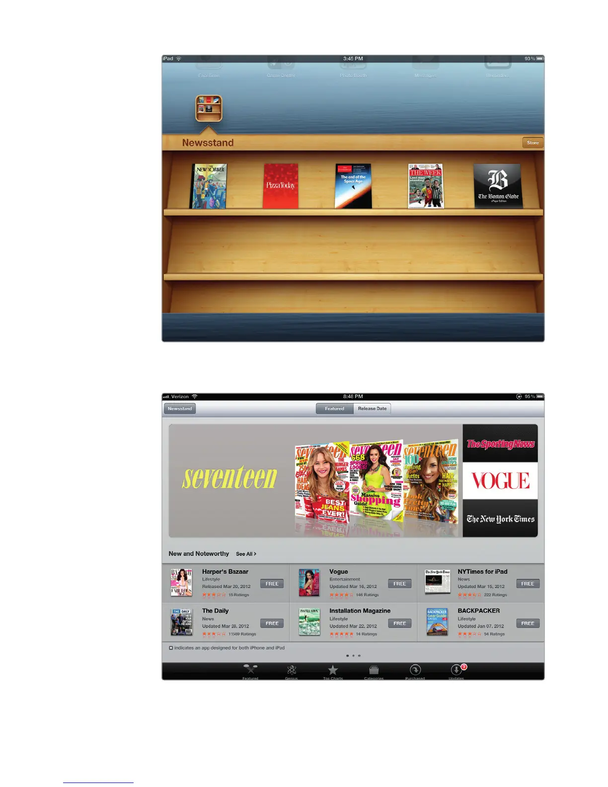 FIGURE 17-8: Newsstand shows you all the magazines you’ve downloaded.