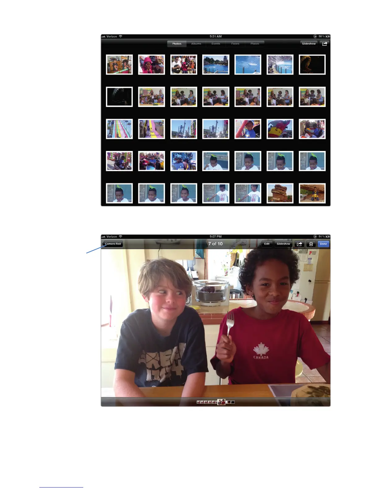 FIGURE 22-2: Tapping a picture displays controls at the top and bot-