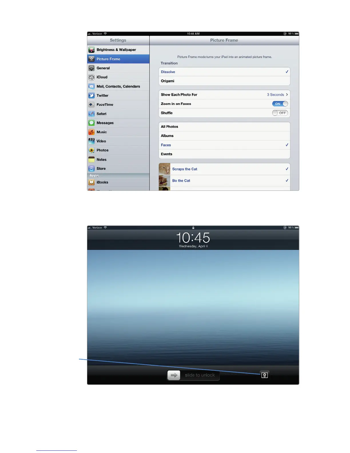 FIGURE 22-8: The Picture Frame icon lets you turn on (or off) your
