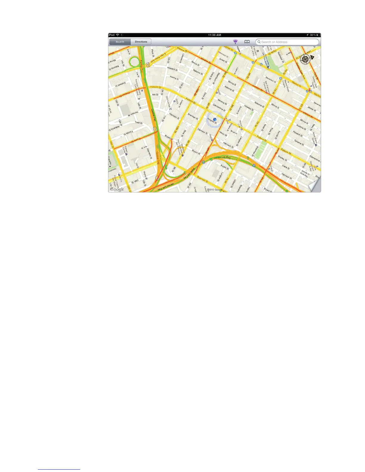 4. Tap the Current Location/Compass icon once to make the compass disap-