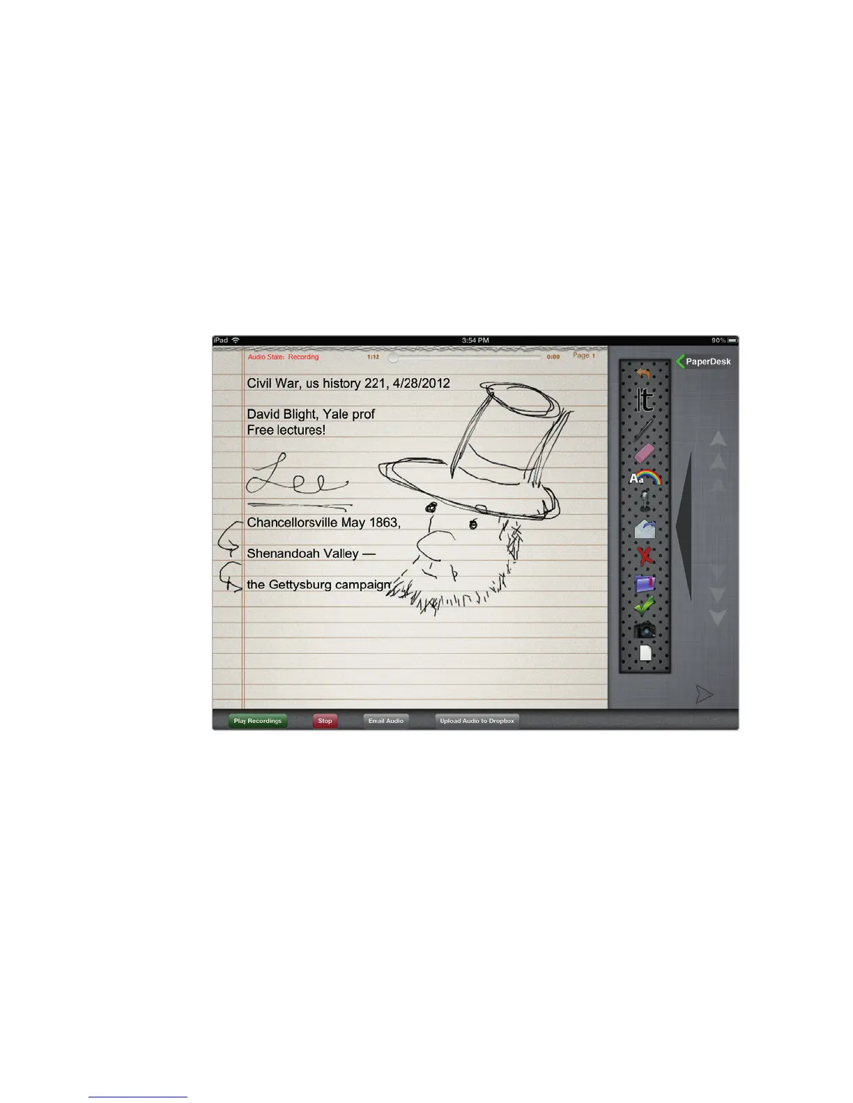 PaperDesk lets you type notes, record audio, and draw and save pictures