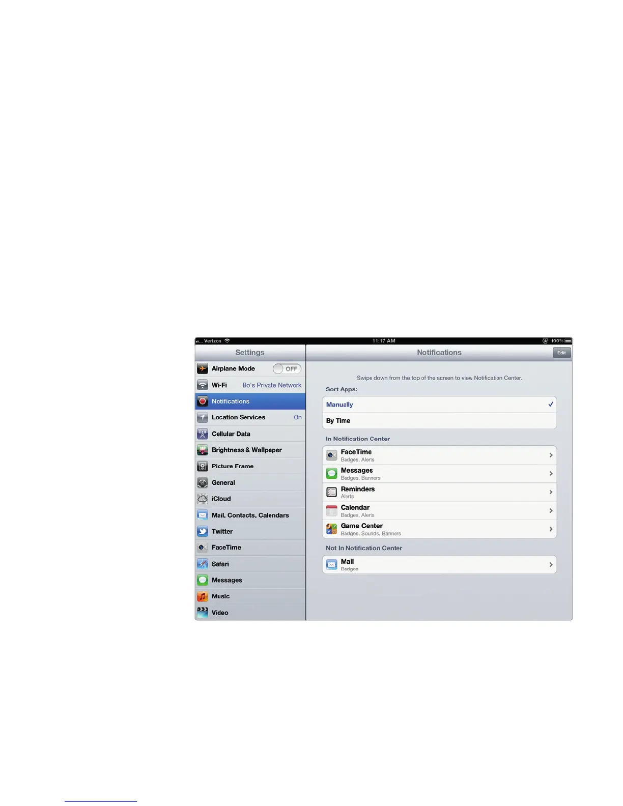 2. Tap Notifications. The Notifications settings screen appears, as shown in
