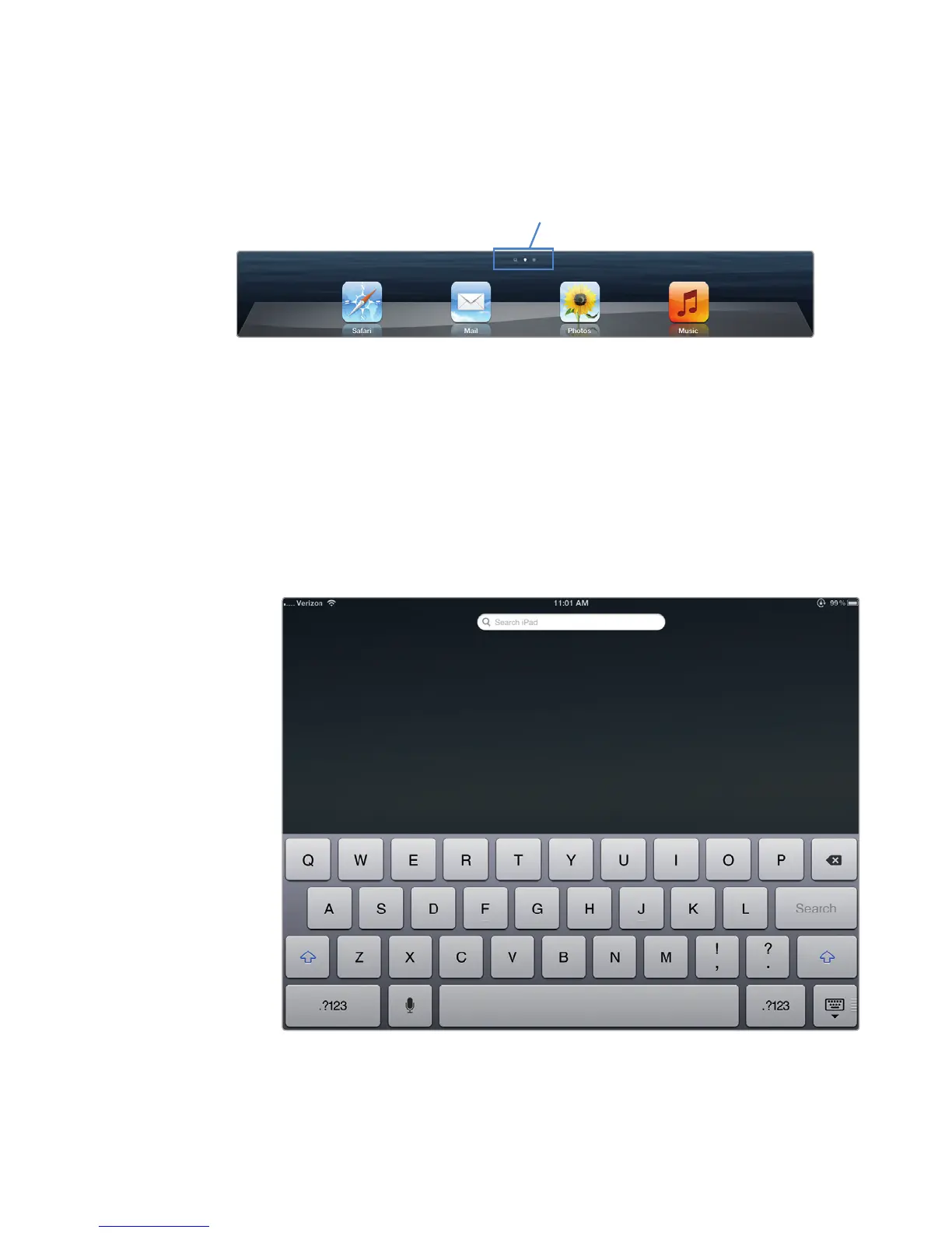 are displayed at the bottom of the screen—each dot represents a screen (see Fig-