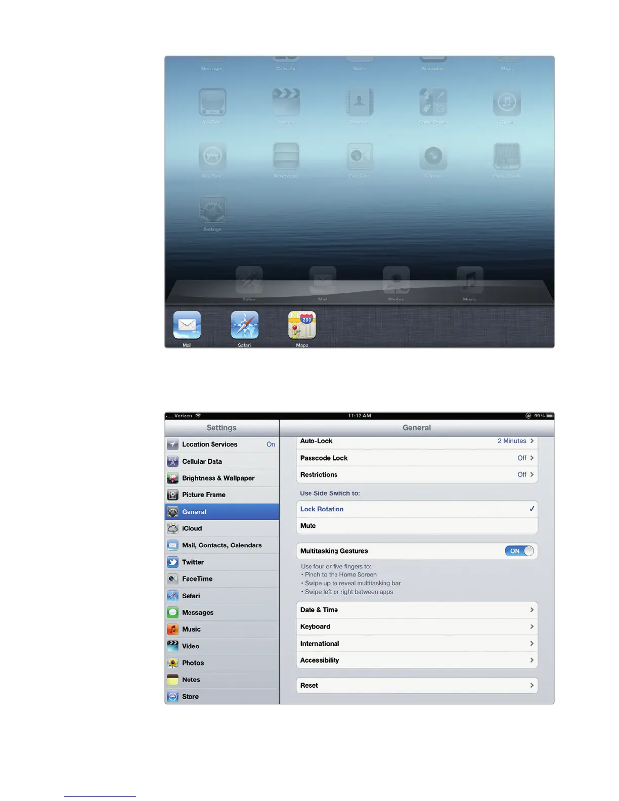 FIGURE 4-5: Swiping up with four or five fingers displays the icons of all