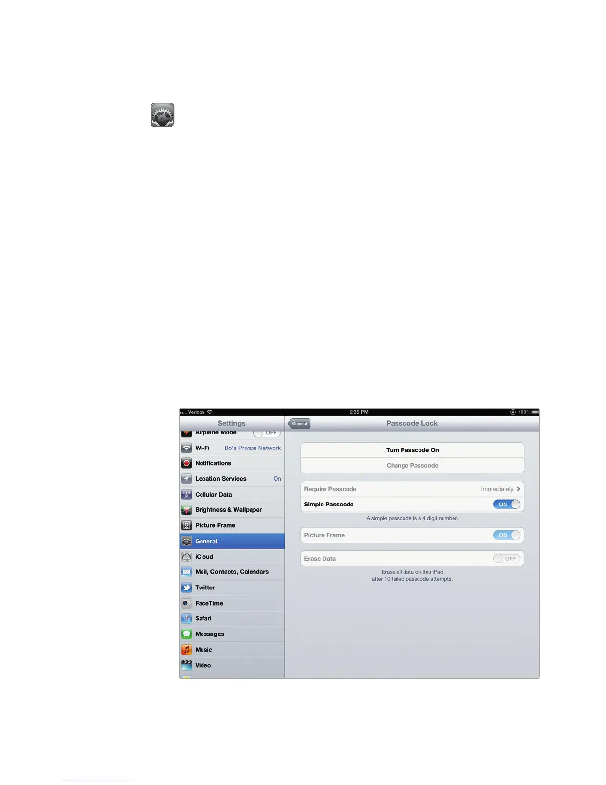 FIGURE 9-1: The Passcode Lock settings screen lets you turn the pass-