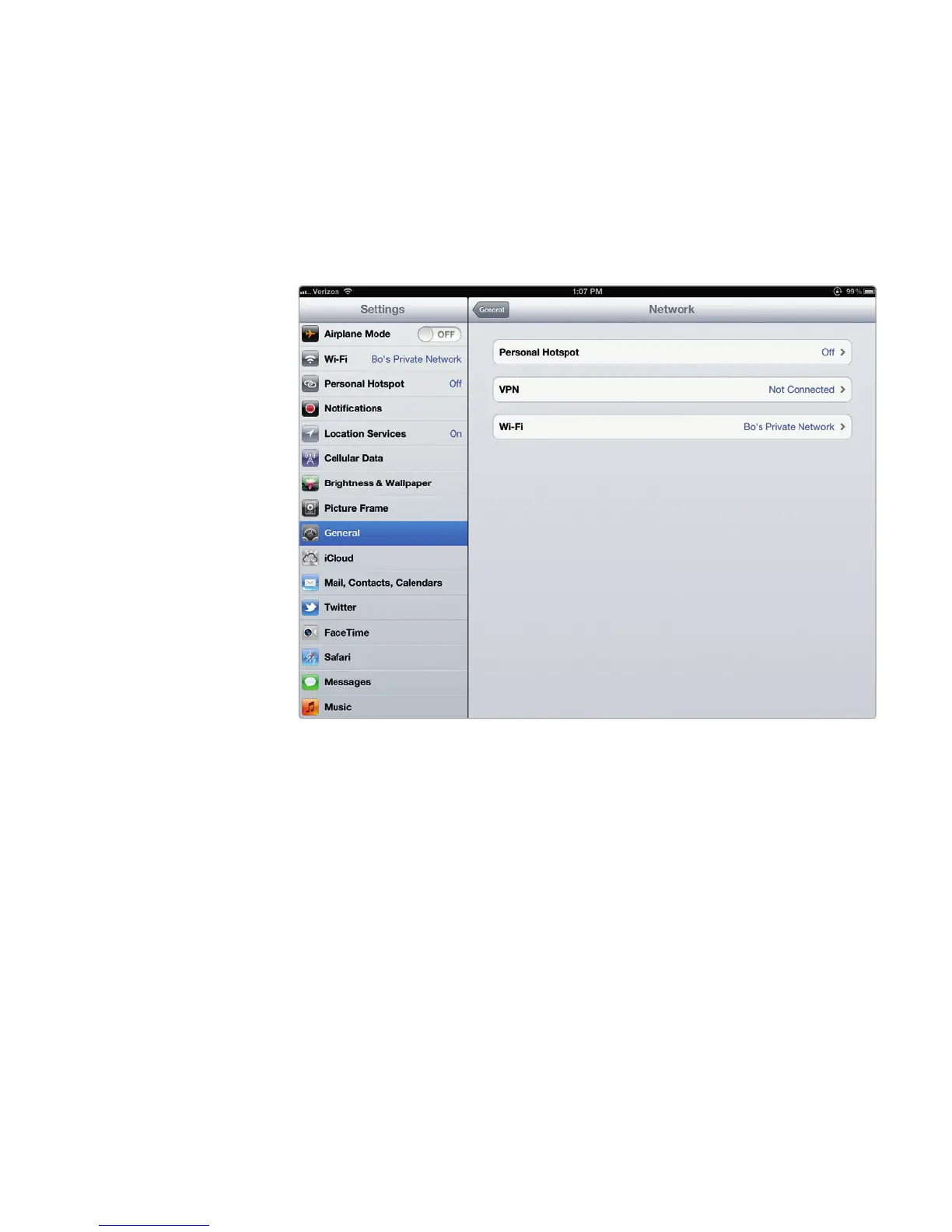 4. Tap Network. The Network settings screen appears, as shown in Figure10-4.