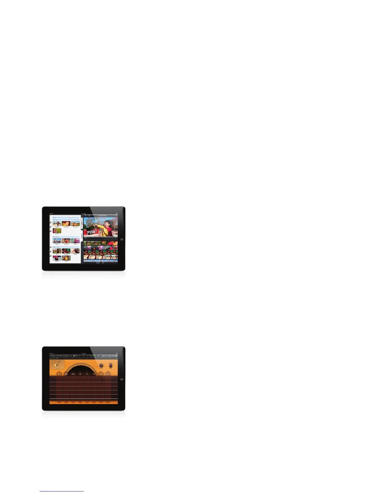 and movies with Camera; musical compositions with the GarageBand app; presenta-