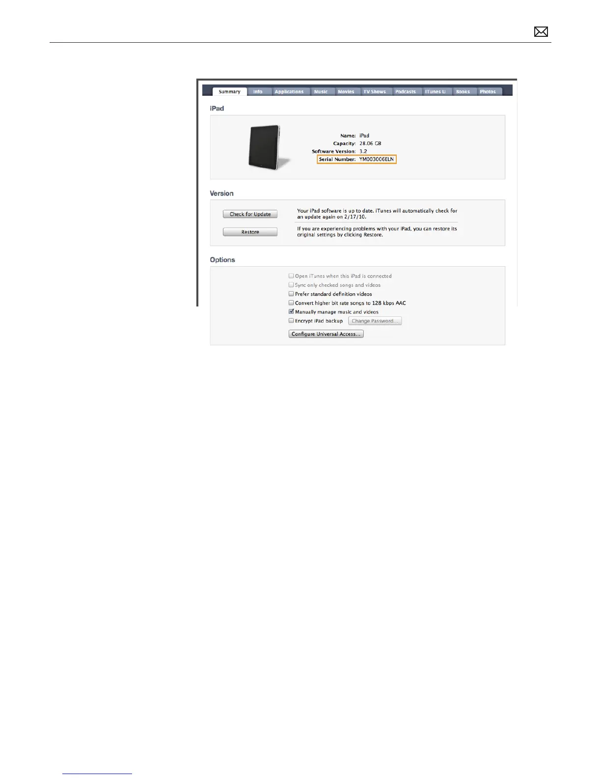 On iTunes Summary panel
