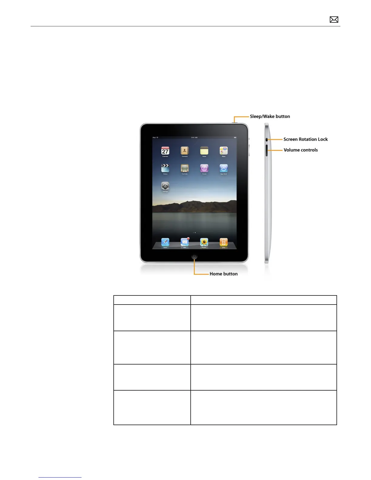 Sleep/Wake button Press the Sleep/Wake button to: