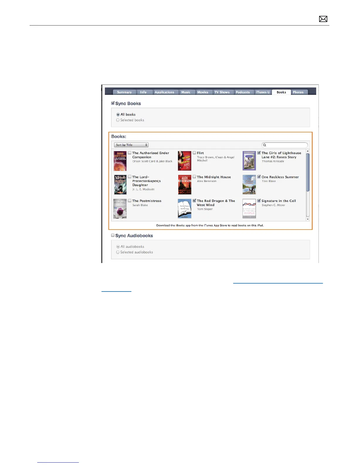 • Books pane: Use the Books section on the Books pane to select your syncing options for