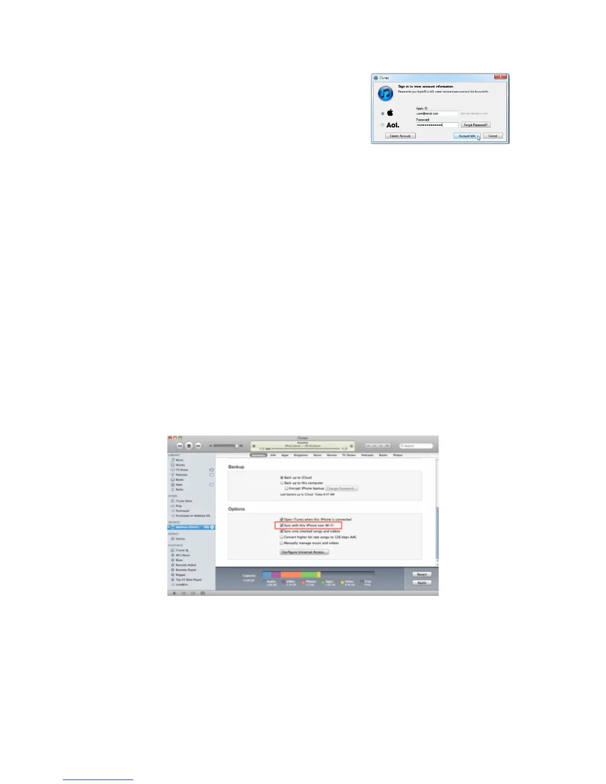 Also, you are able to sync through Wi-Fi, as long as you are on the same network as