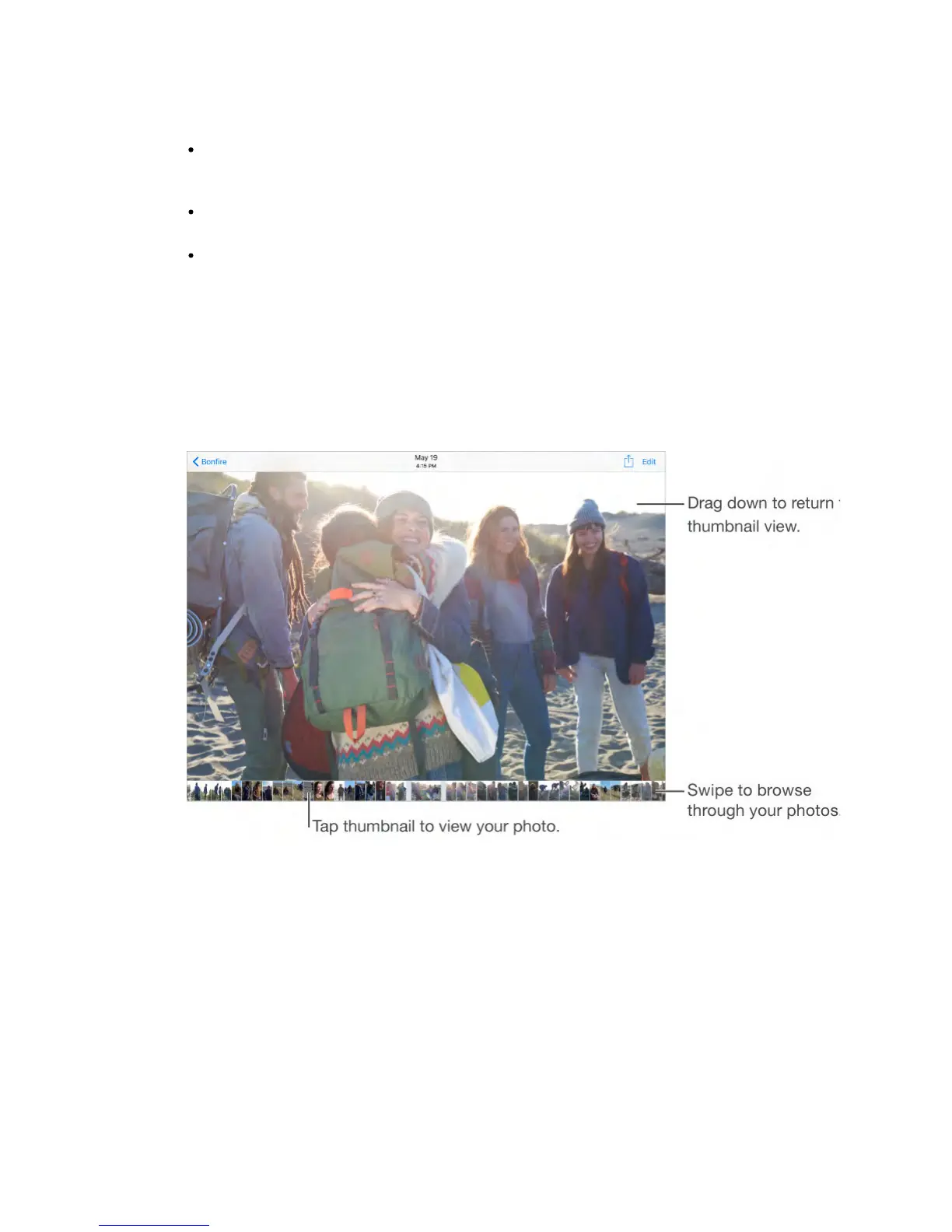 Tap a thumbnail to view it. Drag the photo down to go to thumbnail view.