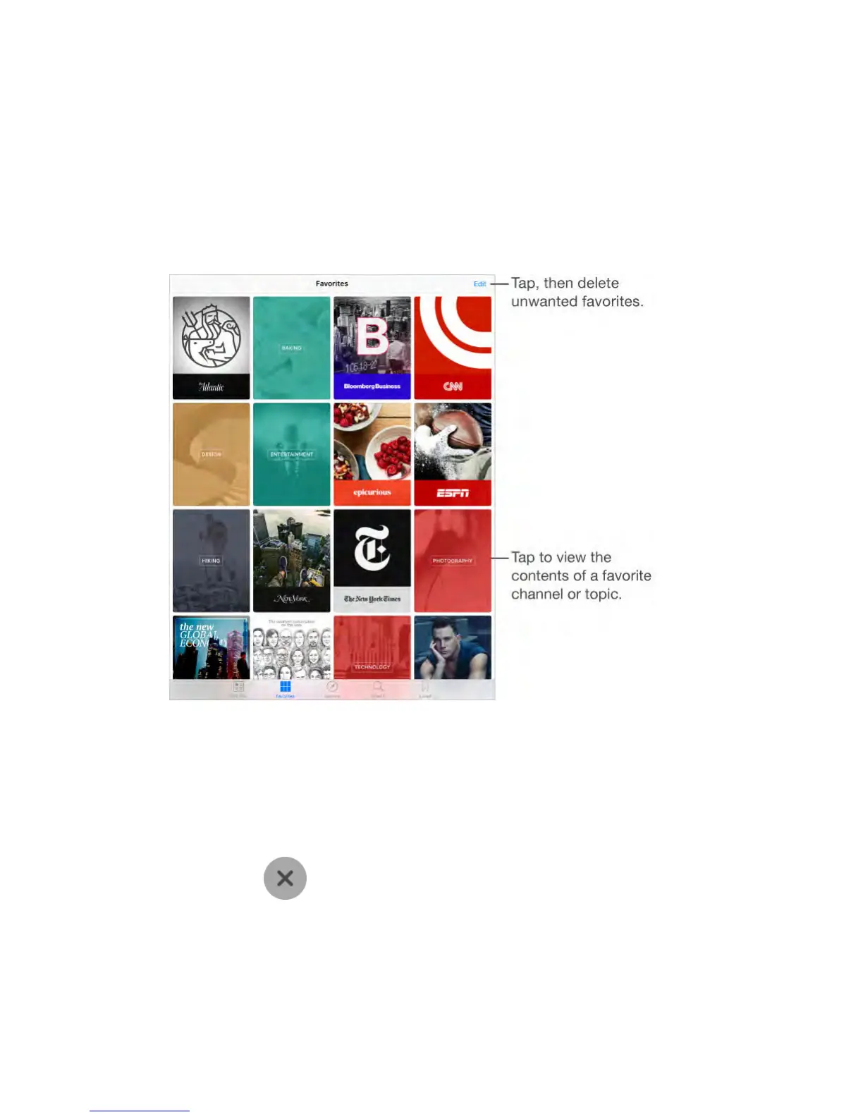 Tap Edit, then tap to delete a channel or topic that you no longer wish