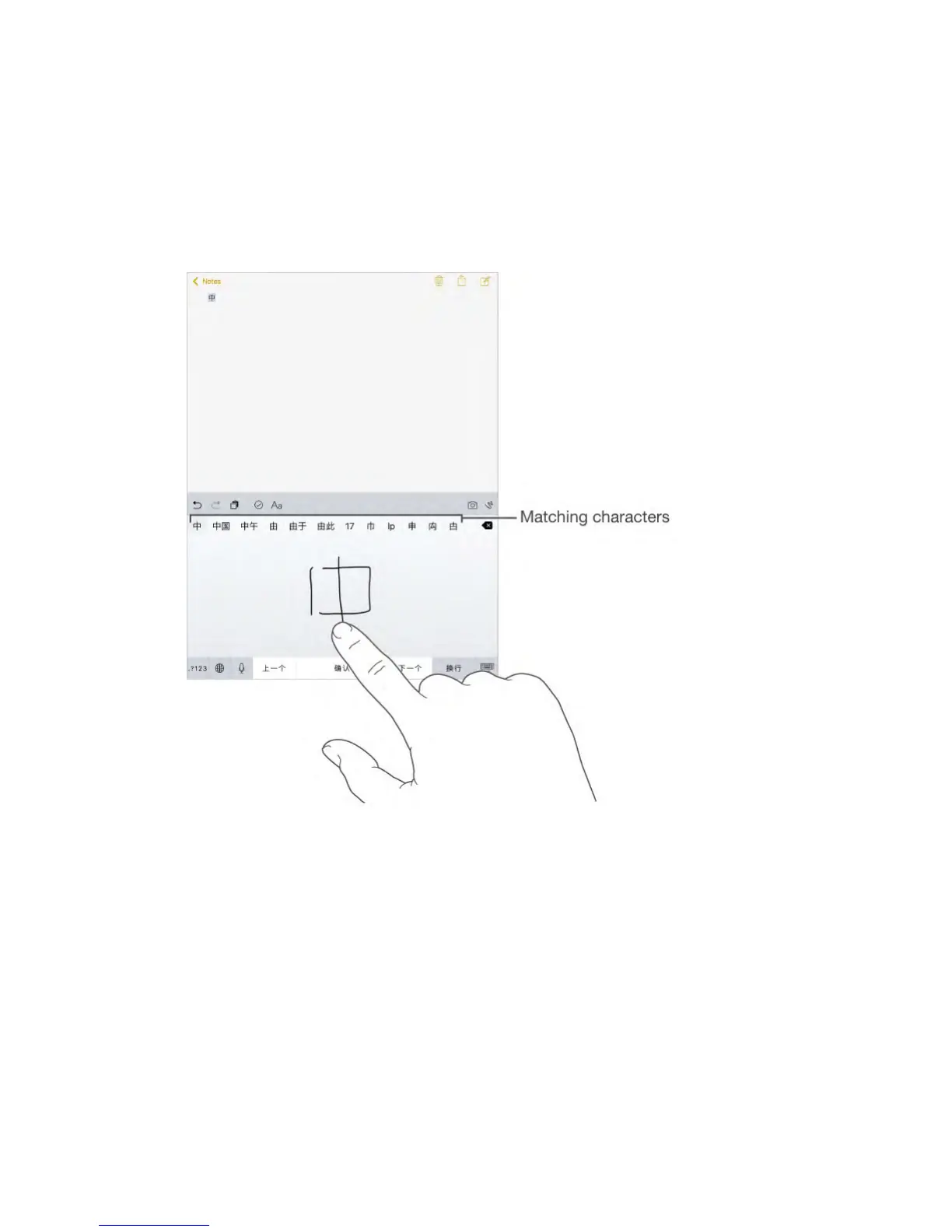 strokes, iPad recognizes them and shows matching characters in a list, with the