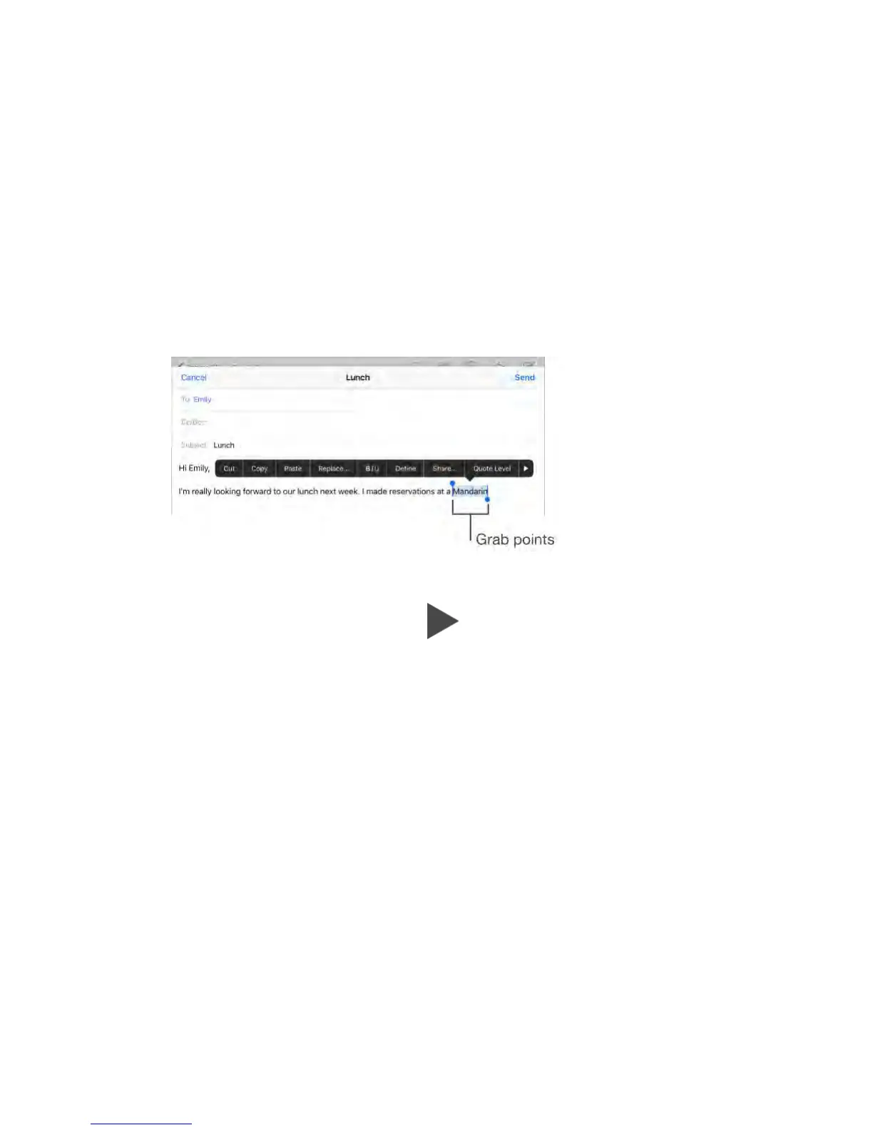You can cut, copy, or paste over selected text. With some apps, you can also
