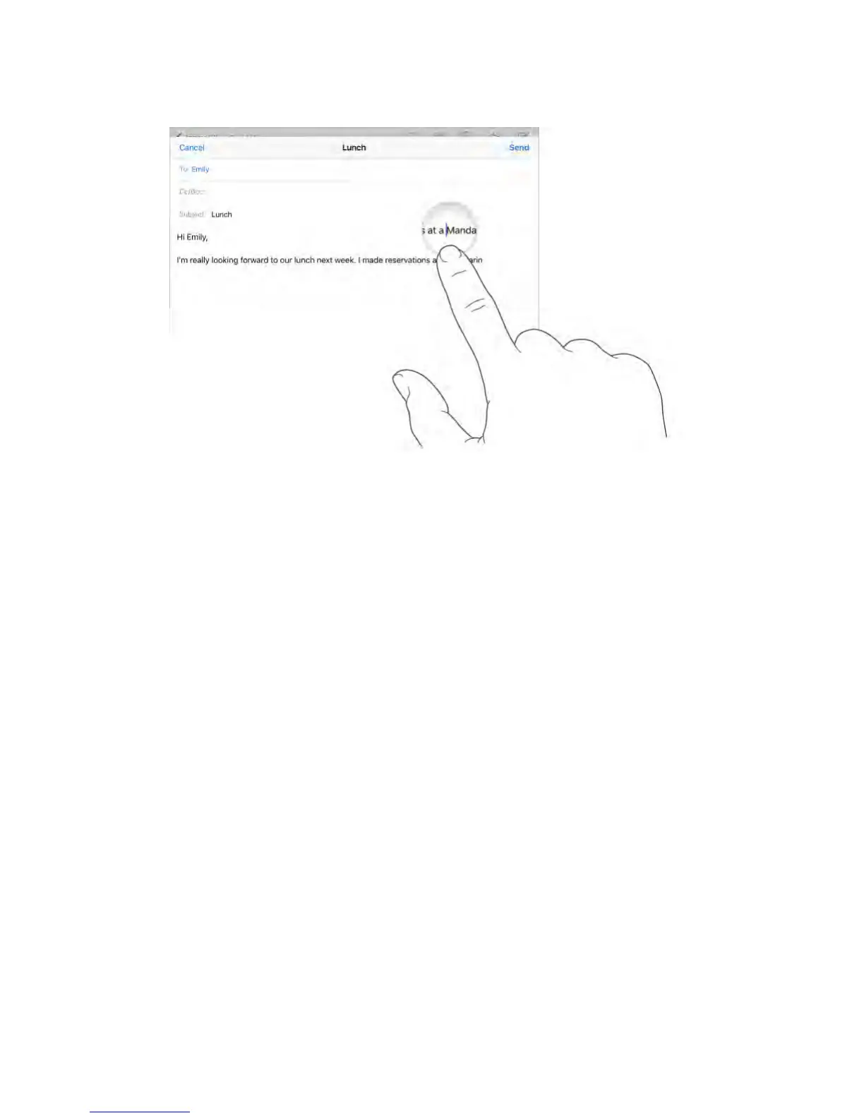 with two fingers to reveal the drag points. Move your fingers to select text. Tap