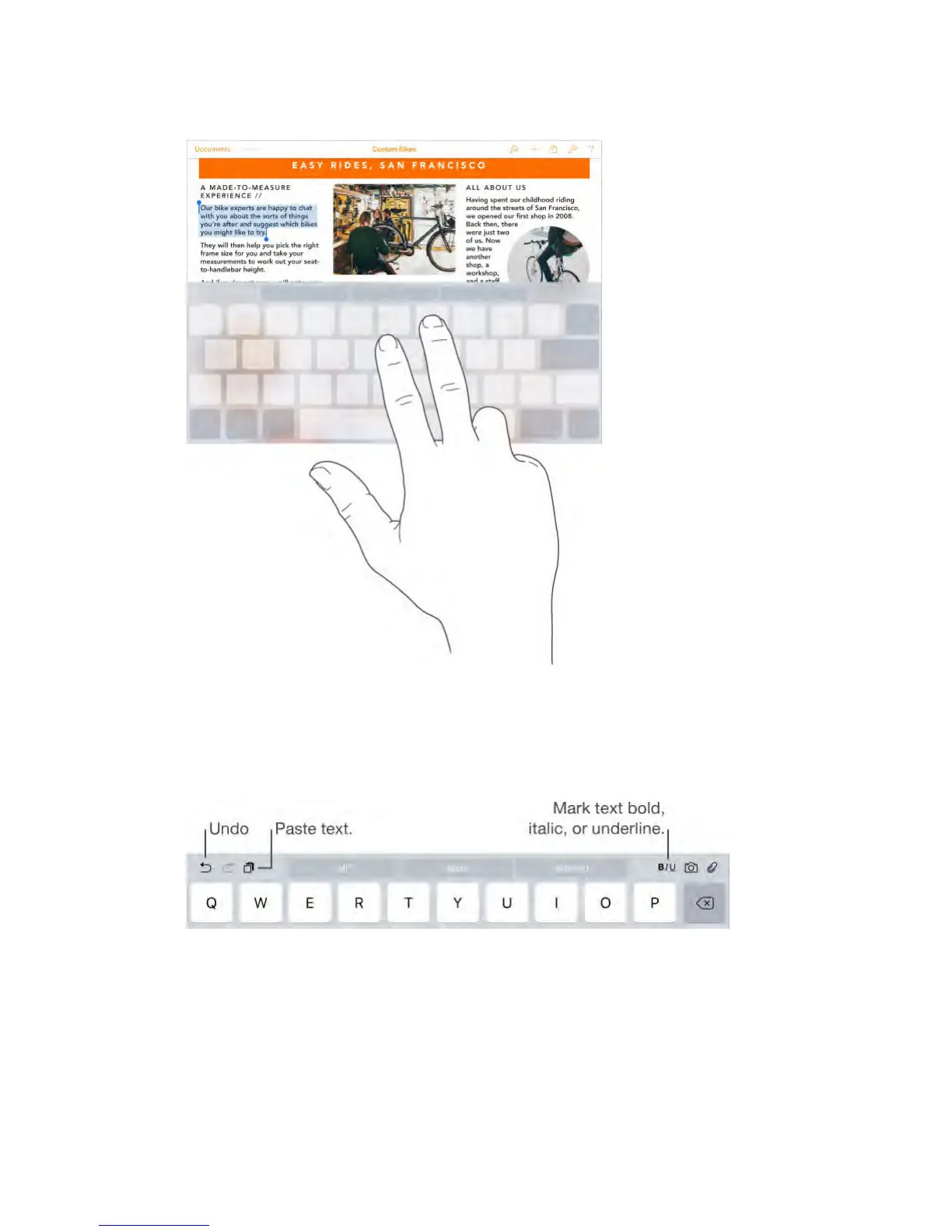 Copy and paste selected text, or style your text to be bold, italic, or underline—