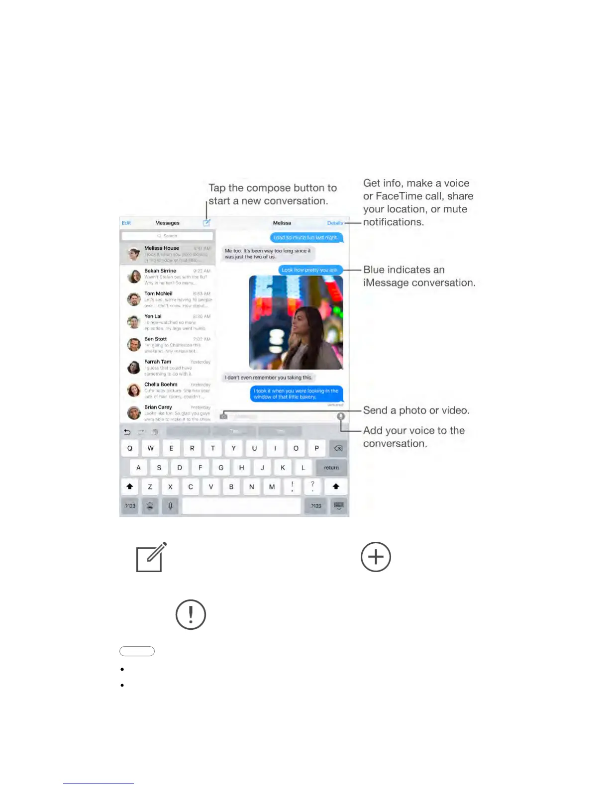 Note: An alert appears if a message can’t be sent. Tap the alert in a