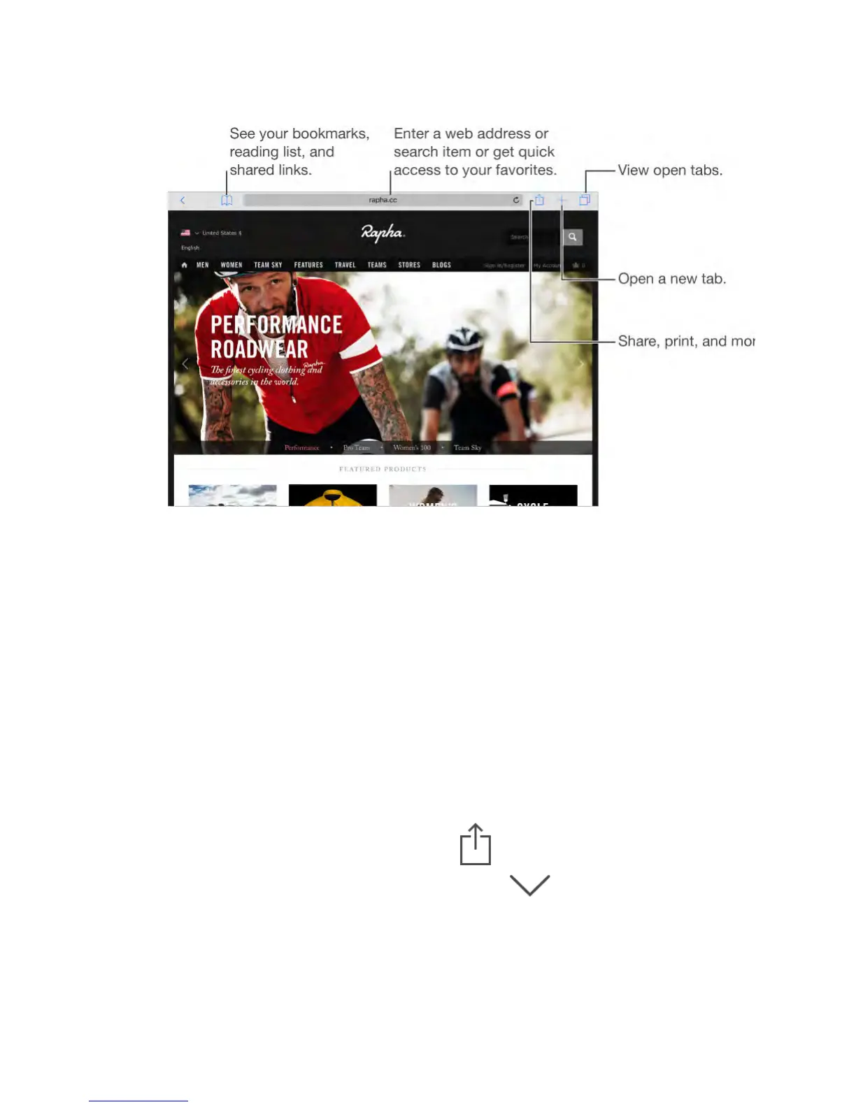 To find a specific word or phrase on the current page, tap , then tap Find