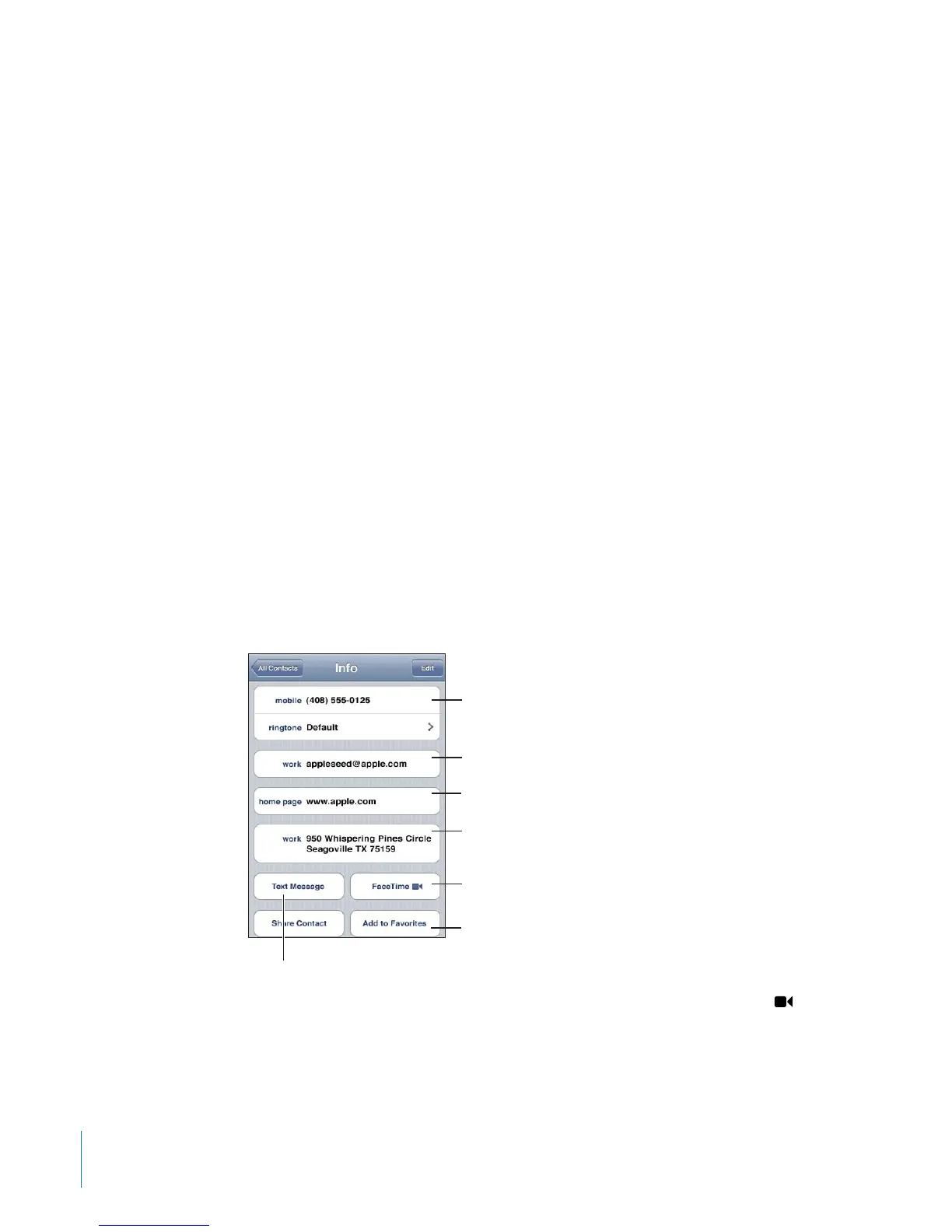 Use a contact’s info screen: Tap Contacts and choose a contact. Then tap an item.