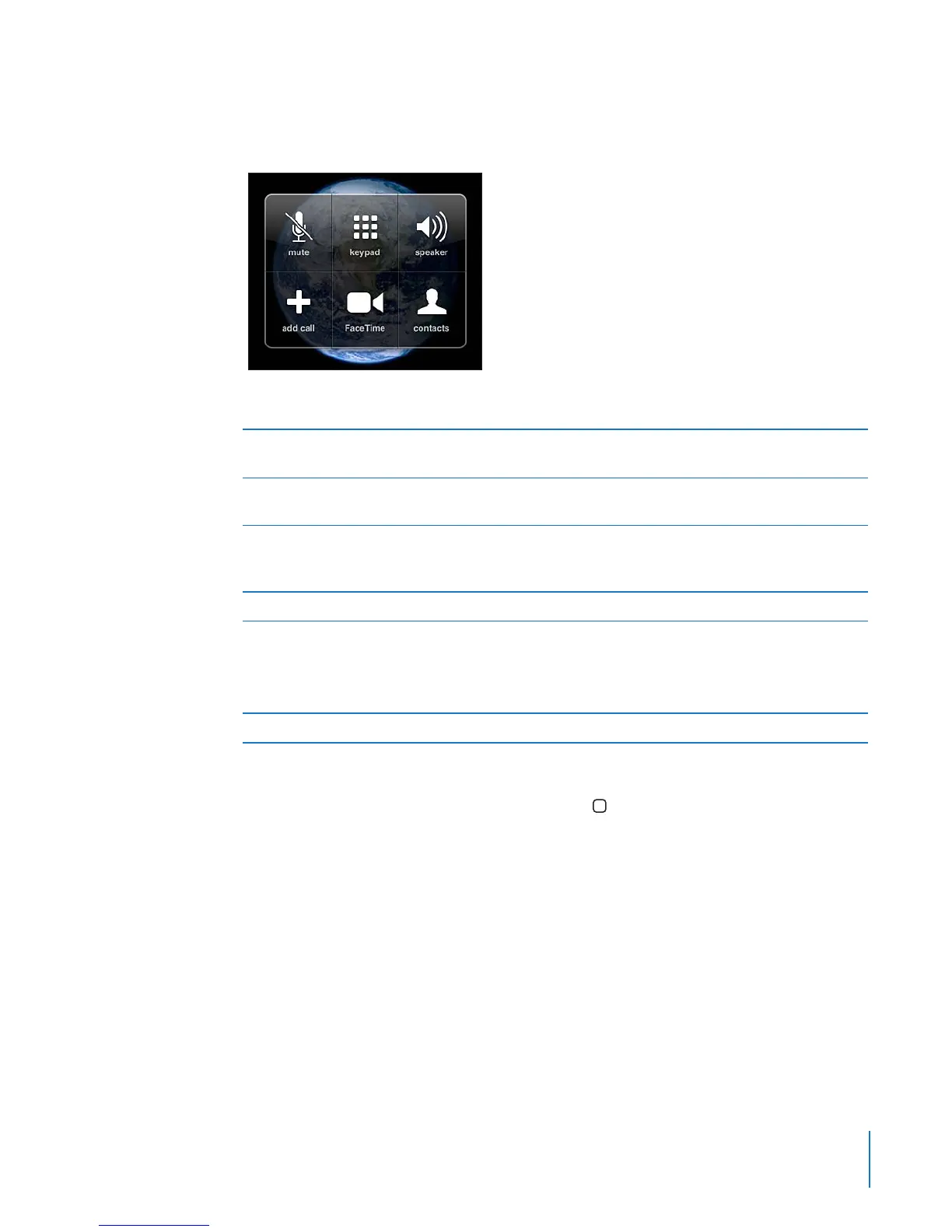 Use another app during a call: Press the Home button, then tap an app icon. To