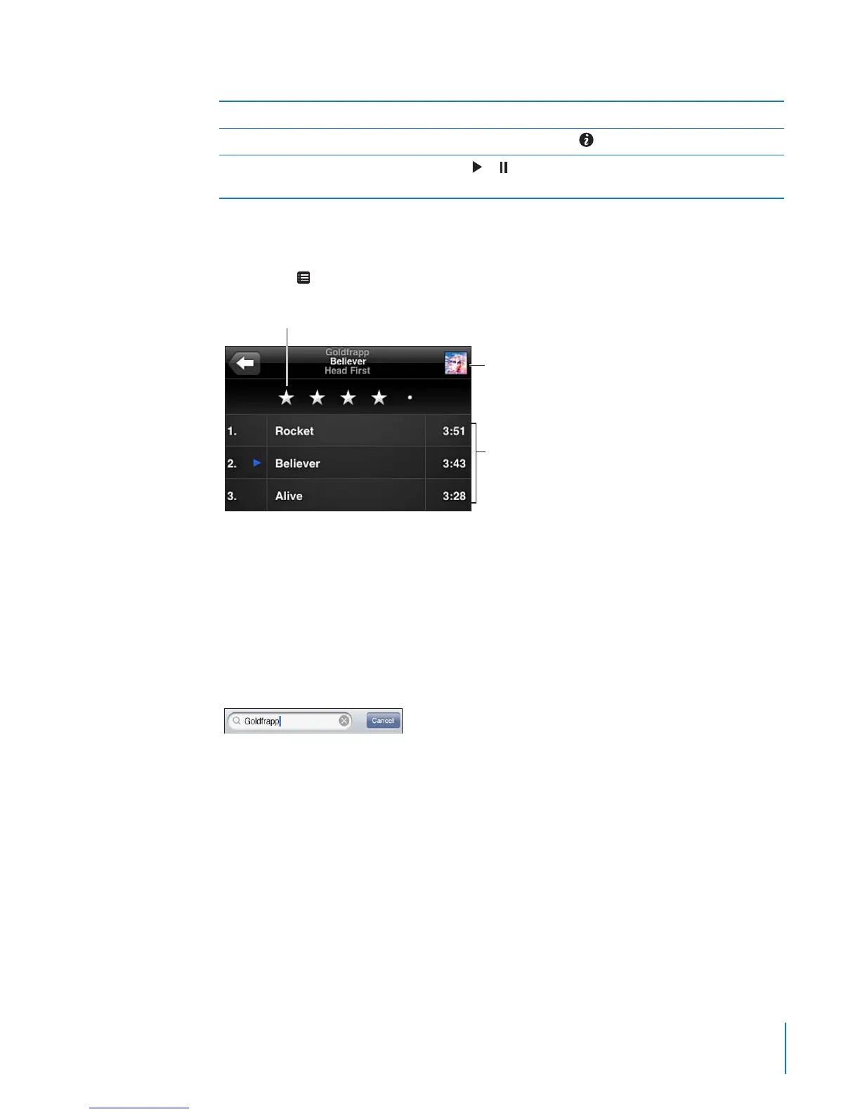 or other view of your iPod content. (Tap the status bar to scroll quickly to the top of a