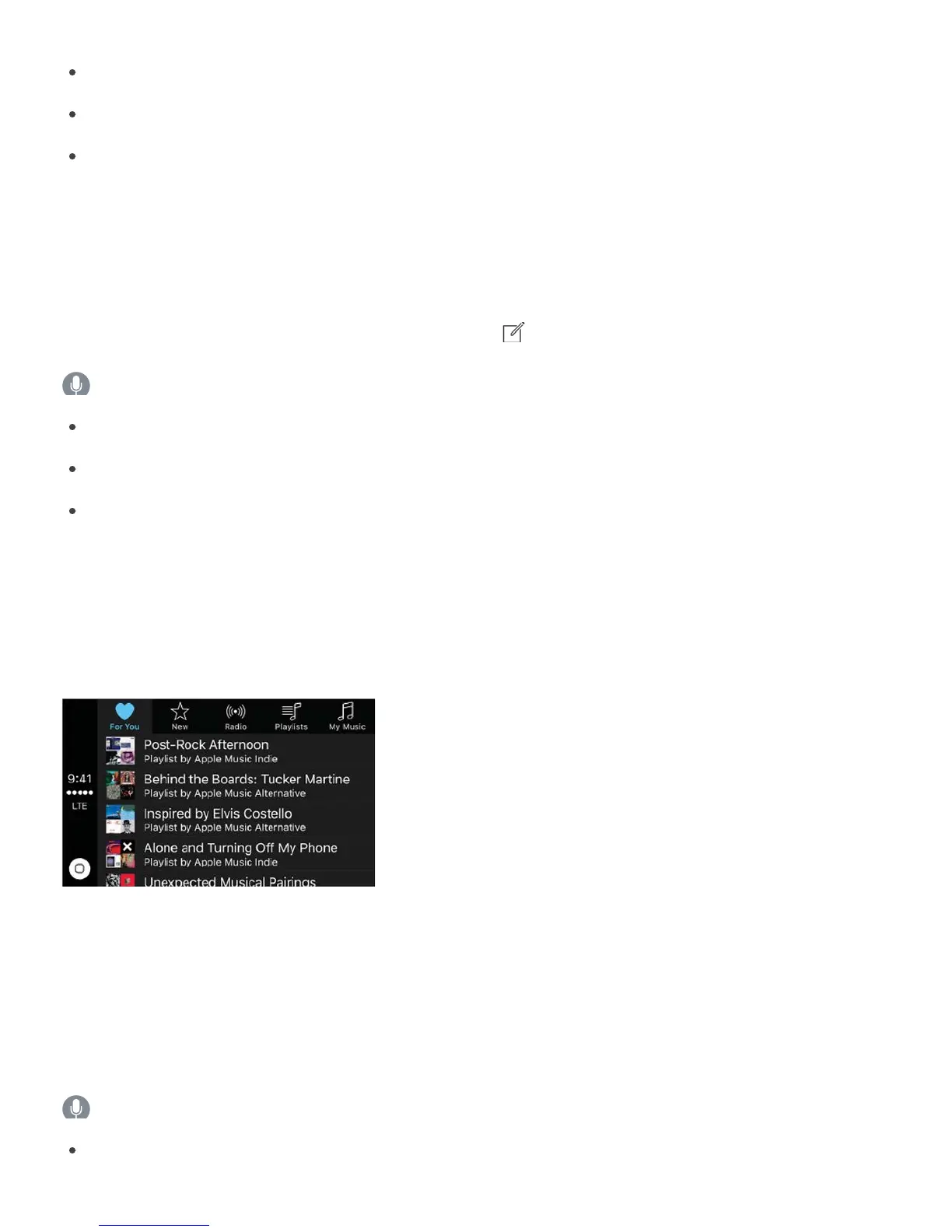 On some systems, Music displays only a partial list of choices while you’re driving. To