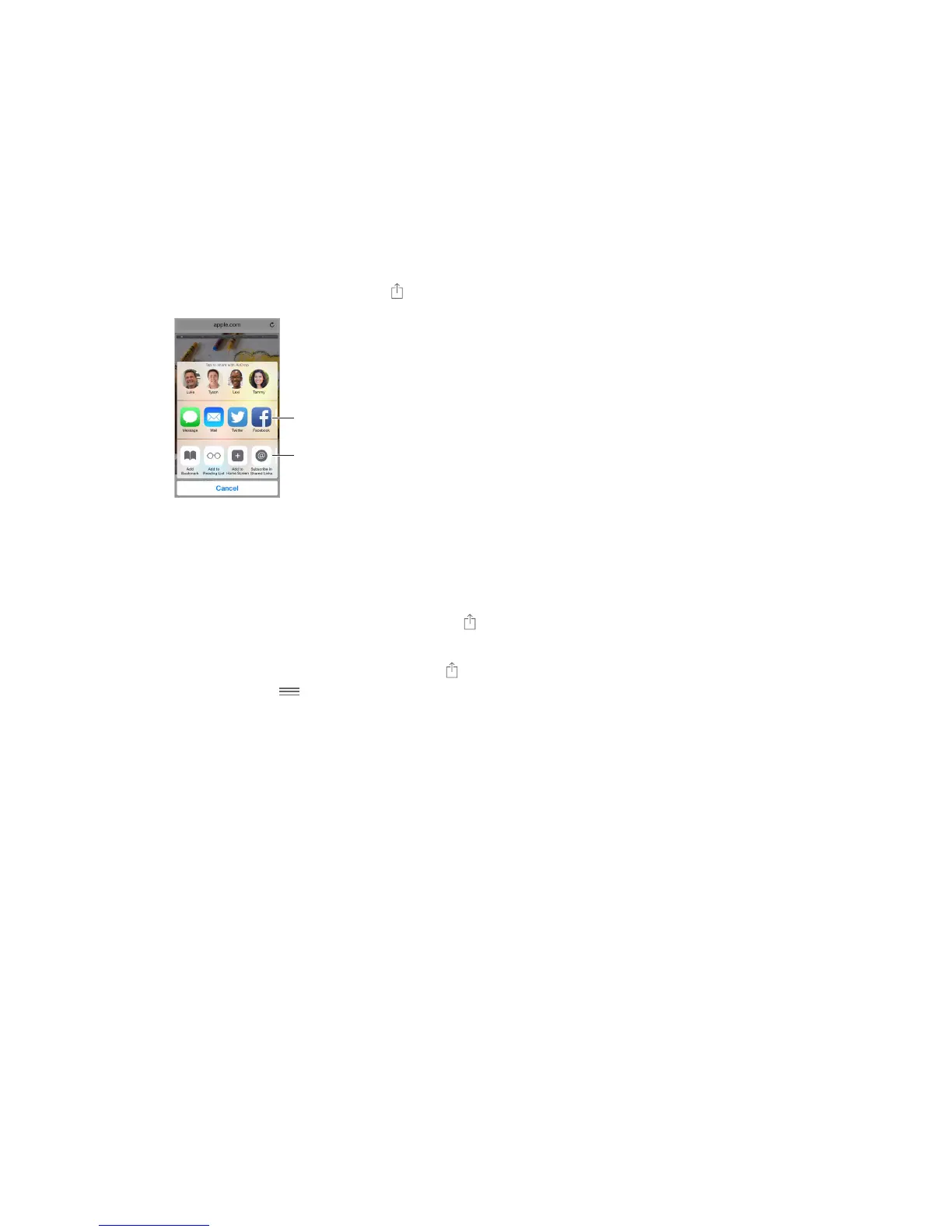 more information about Sharing options, see Share from apps on page 36.