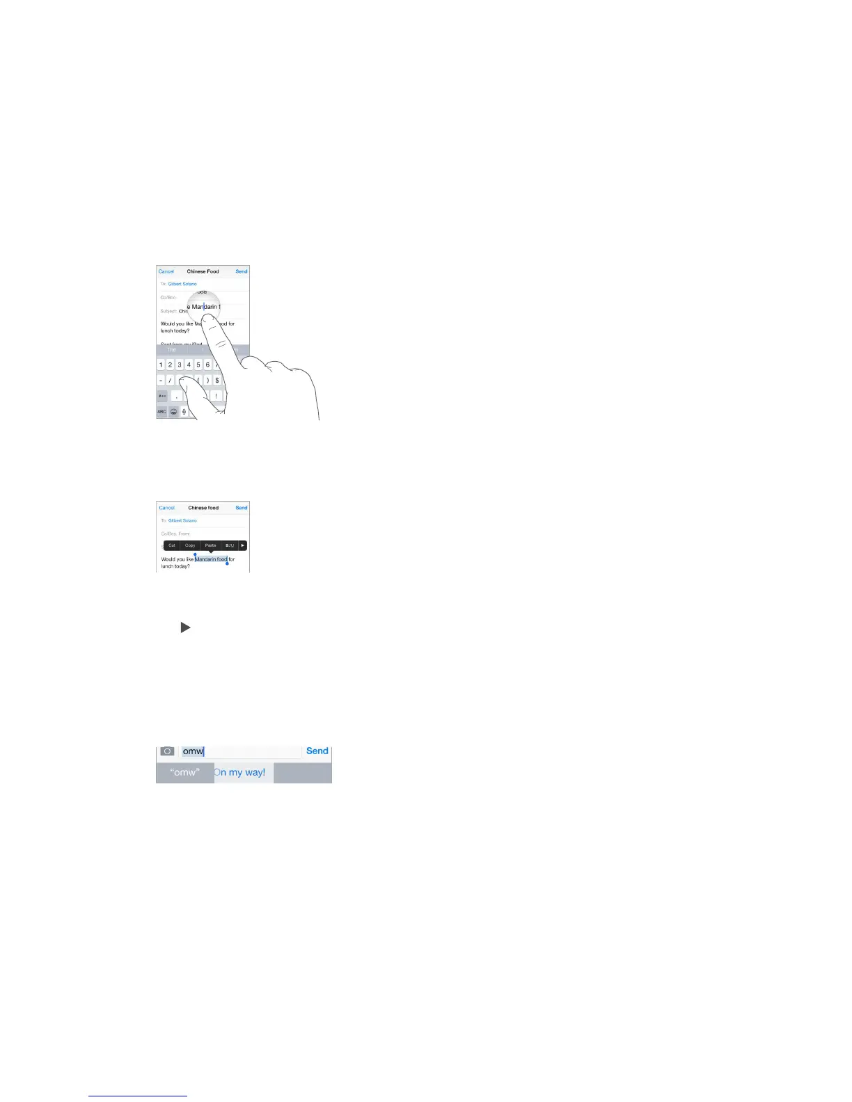 You can cut, copy, or paste over selected text. With some apps, you can also get bold, italic, or