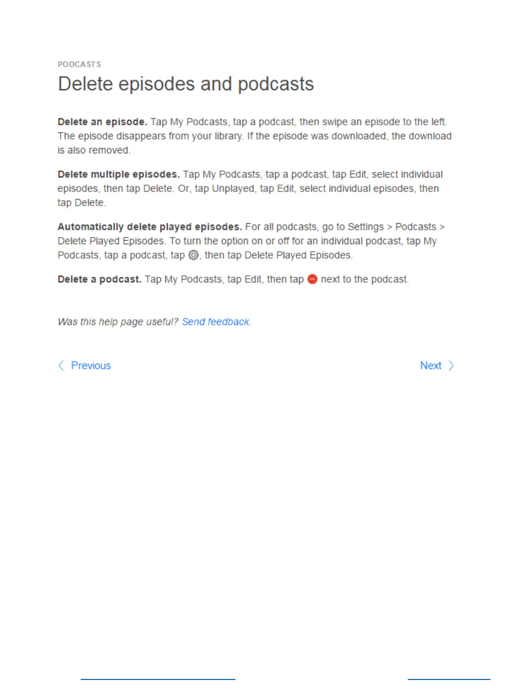 Delete episodes and podcasts