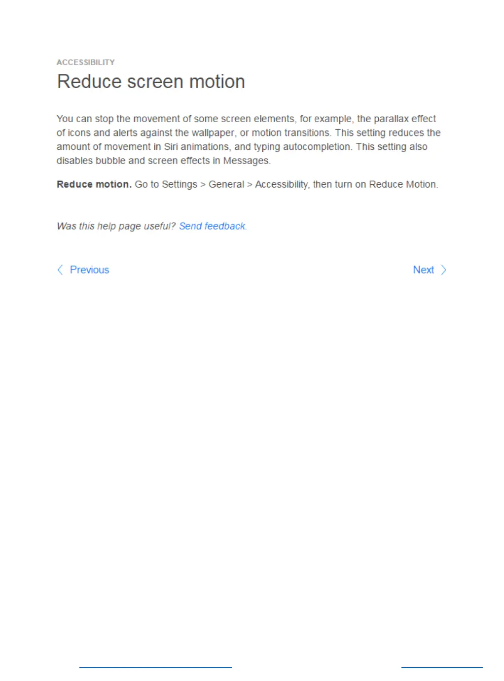 Reduce screen motion