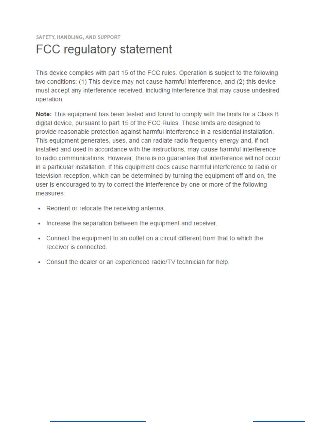 FCC regulatory statement