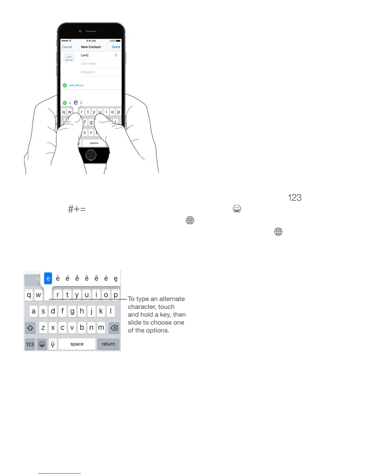 Continue tapping to access other enabled keyboards, or touch and hold , then slide to